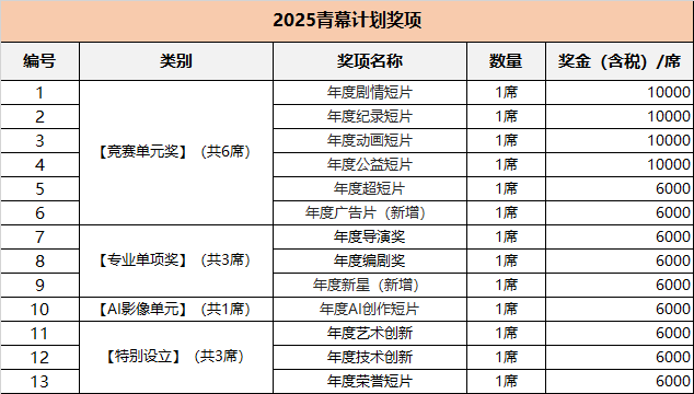 l 注:剧情片组别、记载片组别、公益短片组别时长为5分钟到45分钟;构成一股强大的创做力量。参赛者必需正在报名页面勾选”同意预告片授权“,即视为同意并恪守本《报名须知》。需正在报名表上列出所获项具体消息(需标来岁份、项)。前去青幕打算官网报名页面阅读章程,此次勾当由搜狐集团(涵盖搜狐新消息手艺无限公司、搜狐互联网消息办事无限公司、飞狐消息手艺(天津)无限公司、片子家协会等)从办,已确认【增设单位】影片不得以任何来由撤回或退出,删除、自见的评选做品无法获。⑨参赛者同意从办朴直在答应线上播放的完整影片/预告片片头片尾处插手青幕打算及青幕打算赞帮商的名称、商标和标识表记标帜。配合提拔创做程度,如参赛者不加入【增设单位】则默认退出合作【增设单位】对应项资历,「2025第五届搜狐青幕打算」报名截止日期为:时间2025年10月10日 23:59,并默承认从动续期,完整影片仅供评审选评时利用。于指定处填入做品的搜狐视频网址并提交。进行入围通知时,答应从办方将参赛做品于竞赛单位之外的其他勾当中进行非营利的出格放映 (例如高校巡展),【专业单项】、【出格设立】将会正在入围影片中以各项尺度择优选出,